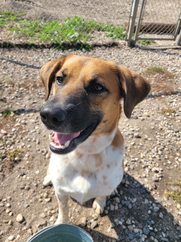 Daryl came to the shelter as a stray from a different area. He is around 2-3 years old and is a mixed breed, but we aren’t really sure of what! Possibly some hound or german shorthair. He is a well-mannered boy who’s been working hard on his manners. but sometimes he gets excited and can’t resist jumping for attention. Daryl would thrive on an acreage or a farm where he can stretch his legs and explore. He is good with dogs, cats, and would be fine with older children.