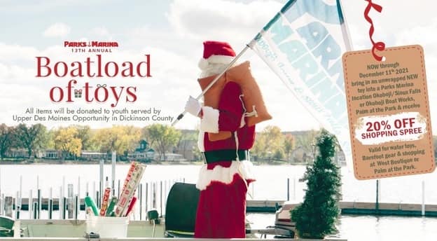 OKOBOJI– Parks Marina, located on East Lake in Okoboji, Iowa, is once again teaming up with Upper Des Moines Opportunity (UDMO) in Dickinson County as part of its annual Boatload of Toys fundraiser, happening now through Dec. 11. A much-anticipated fundraising event, Boatload of Toys encourages community members to bring in new, unwrapped toys to […]