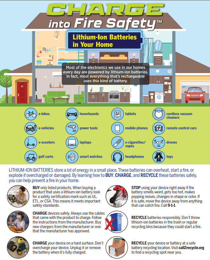 More information about National Fire Prevention Week, along with additional safety tips on lithium ion batteries can be found at fpw.org.